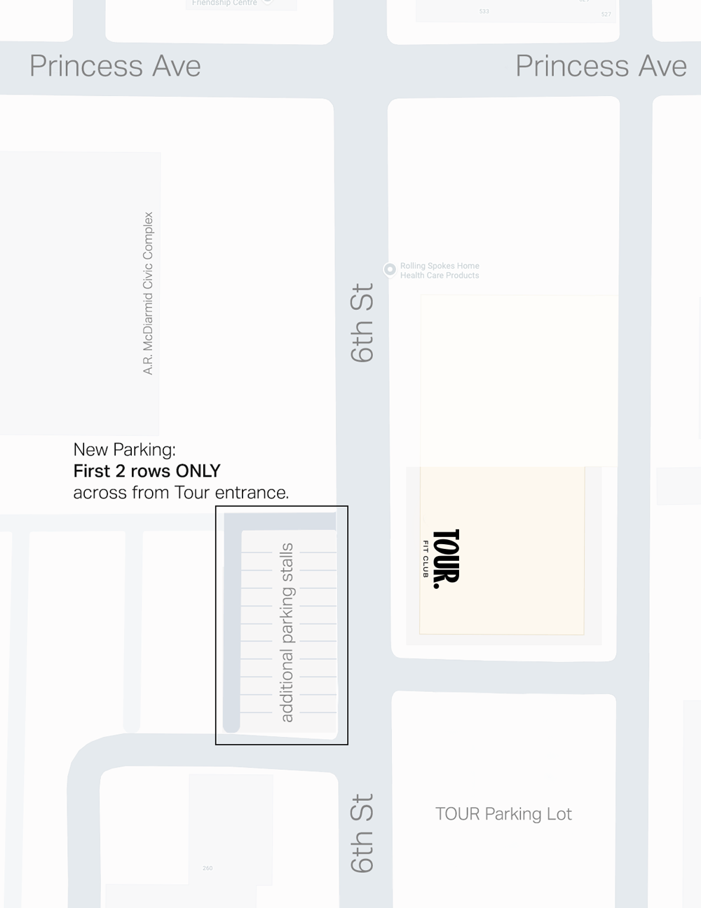 We are pleased to announce that the city has agreed to share some of their parking lot for our members to use during their non-working hours. We will now have access to the first two rows in the lot across from our entrance. (See map below)